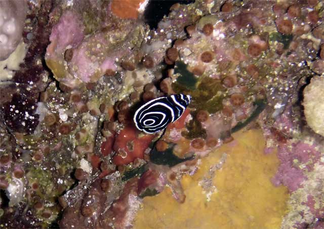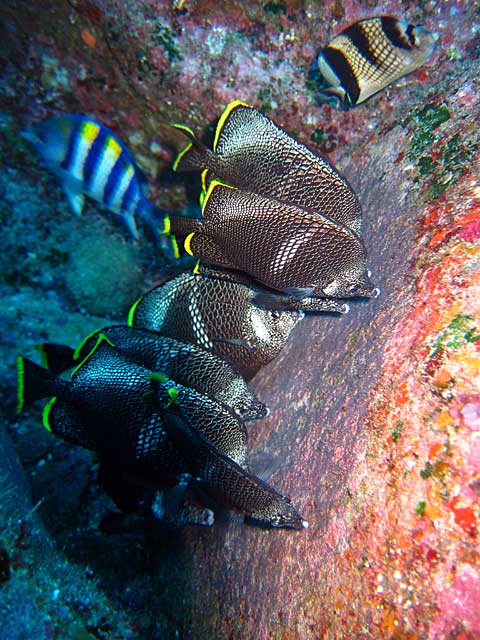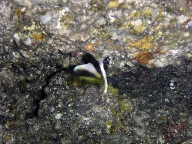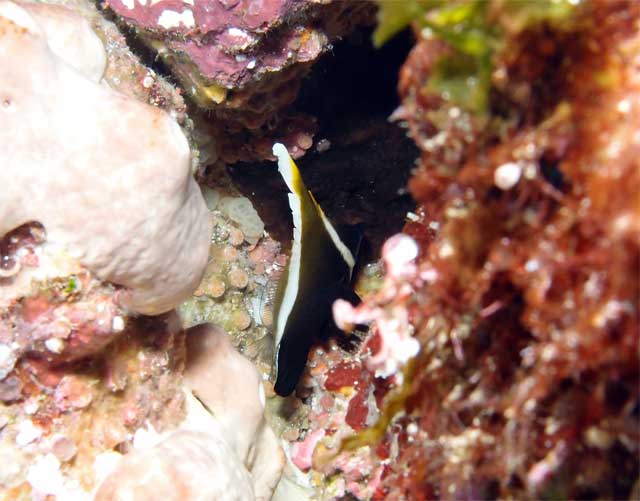 ほかにも穴を覗けば小さなタテジマキンチャクダイの子どもに、ハタタテダイの子ども、ヒレグロコショウダイの子どもなんかも目についたり。