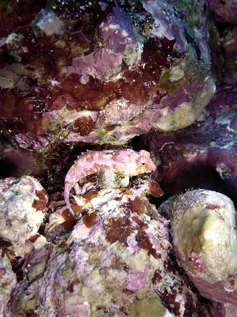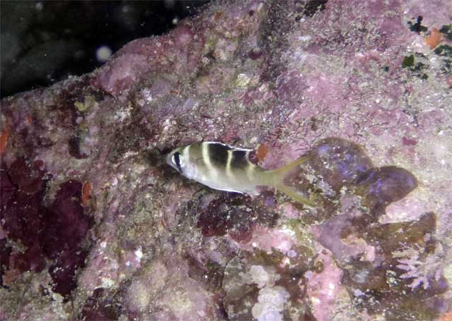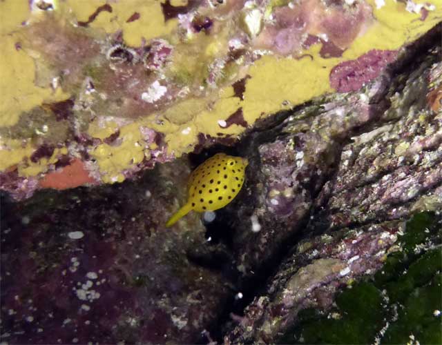ほかにもミナミハタタテダイノ子どもにムスジコショウダイの子どもはあちこちにいて、すき間を覗けばミナミハコフグの子どもなんかもおりました。