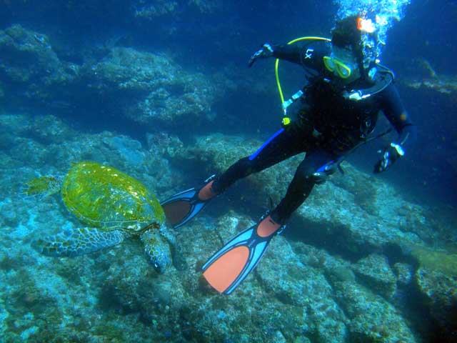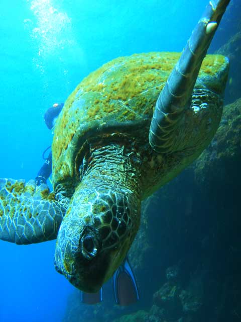 沖の方は水が冷たくもなってますが、湾内は暖かでムロアジやアカカマス、ダツの仲間が群れてますし、夕方頃には湾内にアオウミガメもやってきていたりもしていたんで、体験ダイビングなら沖に出なくても湾内だけで十分楽しめそうな感じです。まぁ、日中ひとが入りだすとカメ沖に逃げちゃいがちなんですけども・・・・・