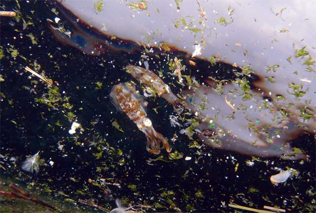 水面付近のゴミ溜まりにアオリイカの子どもがいたり、午前中に教えて貰ったハリセンボンのちっちゃな子なんかもおりました。