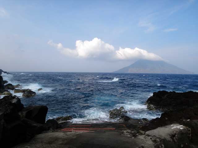 湿度も上がり蒸し暑く雲も多めで夕方には雨も降ってきていた今日の八丈島。海の方は、南西側は凪いでいますが沖はとっても流れておりました。