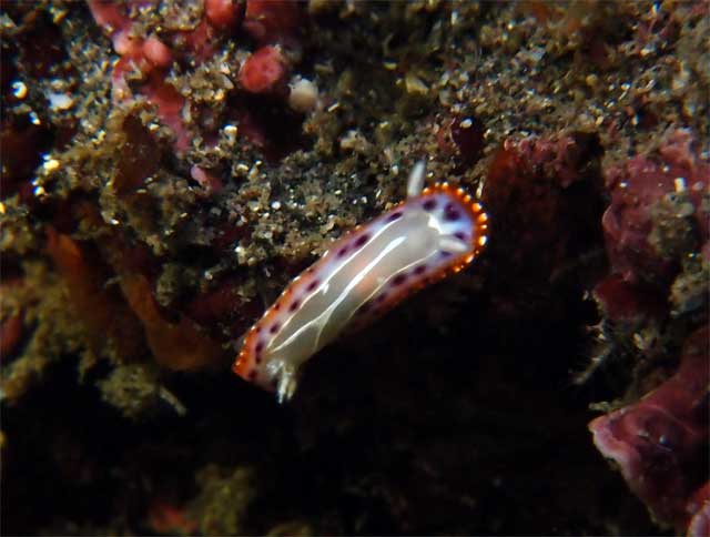 あとはミカドウミウシのちょっと育ったやつや、センテンイロウミウシ、大きなパイナップルウミウシ、オトヒメウミウシに、スミゾメウミウシ、ゾウゲイロウミウシなんかもおりまして、こちらもなんだか夏を感じさせないウミウシ具合となっておりました。