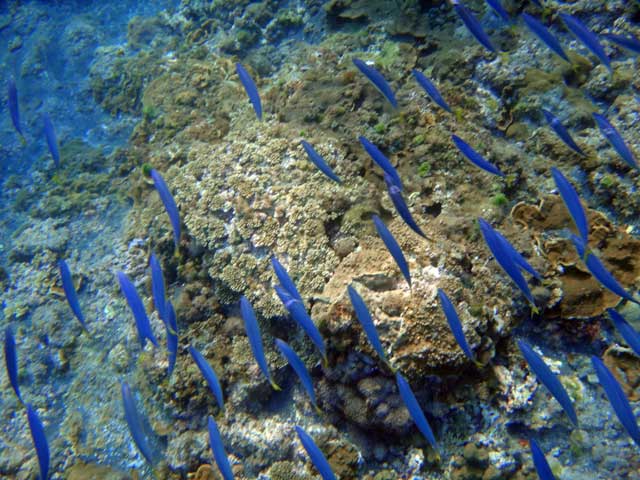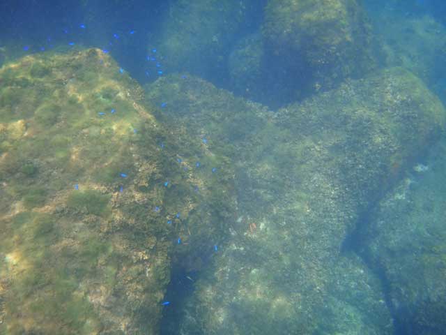 午後からもカメを狙って八重根にいってみましたが、表層付近は濁りまくっておりまして、魚はいるが上からはぜんぜん見えない感じでもありましたが、結構沖まででてみると海は蒼くもなっておりました。