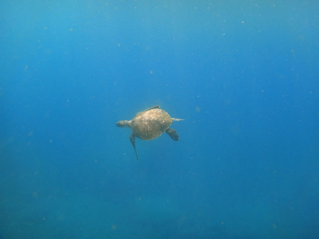 午前中はまだそこまでひどい濁りでもなく、タイドプールで練習をして沖まで出ればたくさんの綺麗な魚やアオウミガメも見られたり、