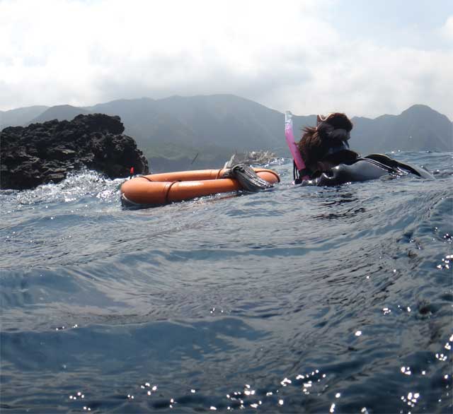 沖はうねりもあってベラの仲間がたくさんの浅い根上には行けませんでしたが、頑張って泳いで貰った分アオウミガメも数匹ご紹介でき、夏の日差し差し込む八丈島の海を楽しんで頂けました。