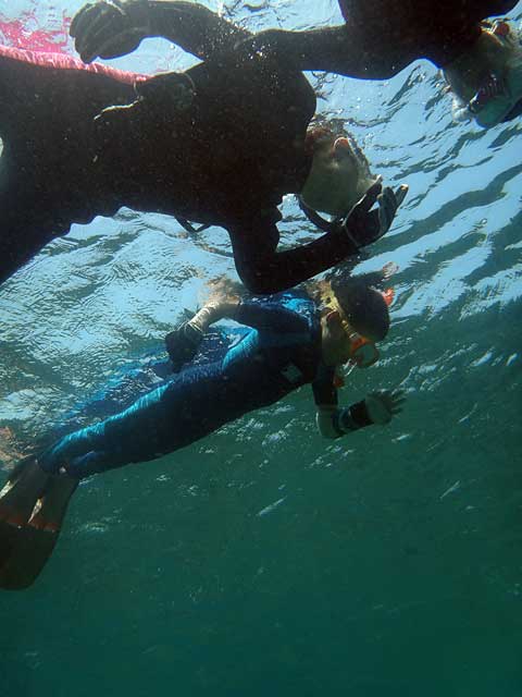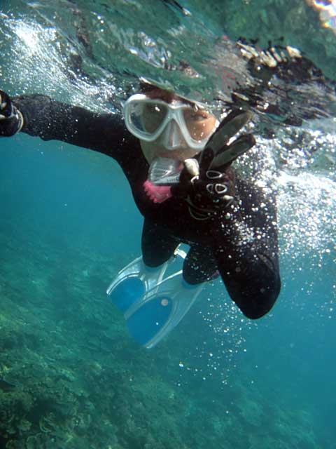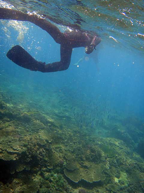 午前中はお子さま連れということで波のないとっても静かなところで練習をして、サンゴの綺麗なところまで泳いでいって