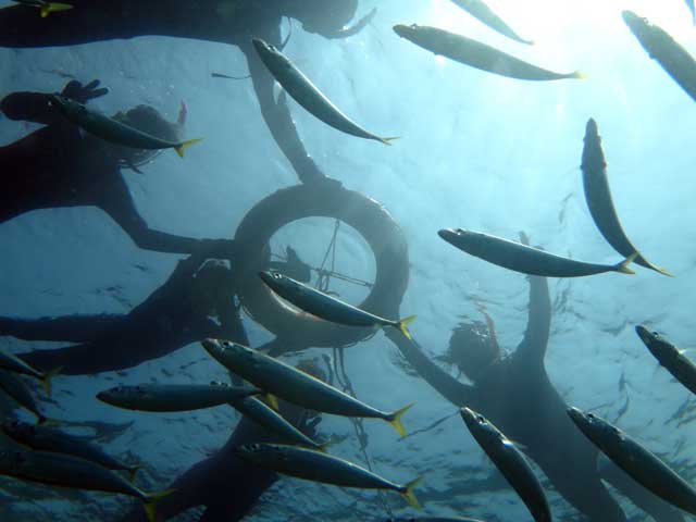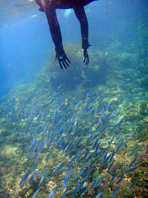 差し込む日差しも気持ちよくムロアジの群れなんかも入っていて、夏の八丈島を楽しんで頂けた様子。