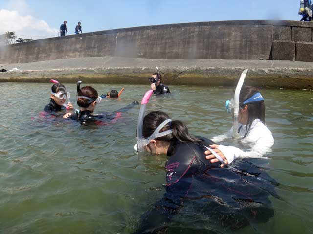 午後からは、カメ狙いで少し濁りがありますが八重根にいったりもして、タイドプールでは練習しながらベラの仲間を見つつ、外海にもでてみて今日もカメを上から眺めて頂いて、こちらもみなさん楽しんで頂けた様子。