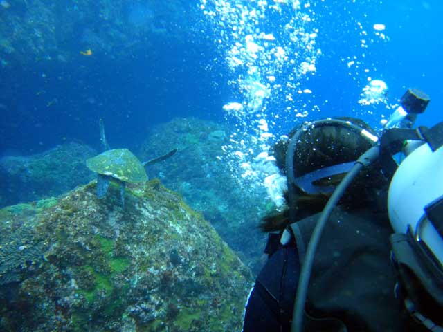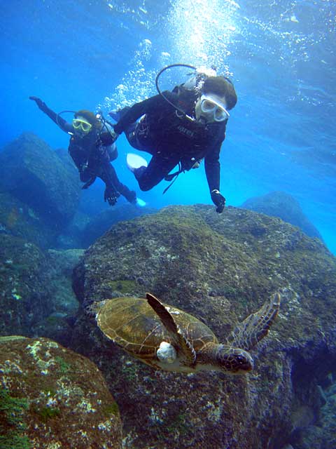 はじめての方にもおすすめの八丈島での体験ダイビング、初心者やブランクでも安心のガイドダイブ、丁寧でしっかりとしたPADI Cカード取得講習など、なによりもお越し下さるみなさまとの出会いを大切している東京から飛行機ですぐの八丈島のダイビングショップです!! [ゆっくり天気も良くなって]