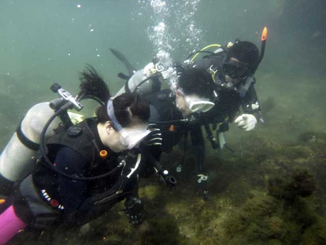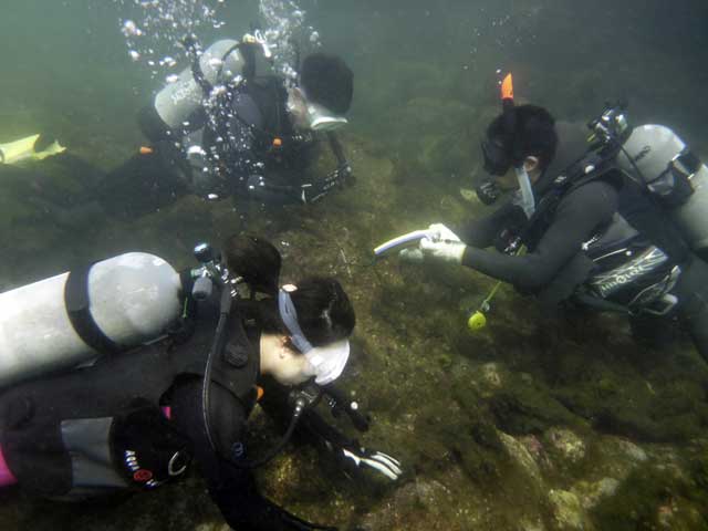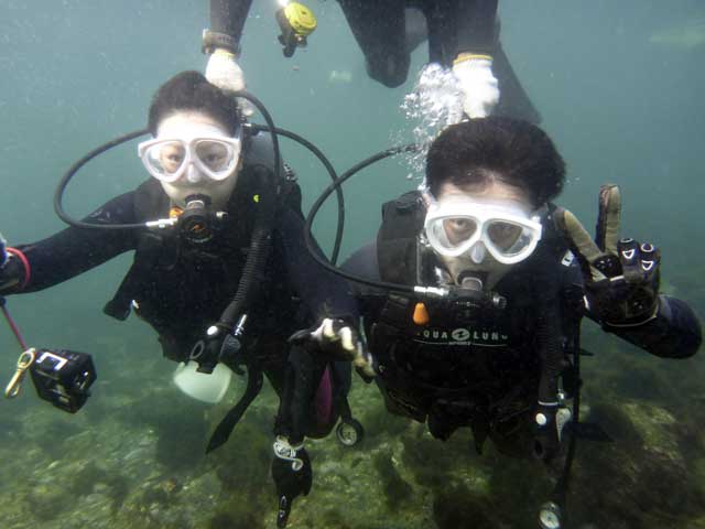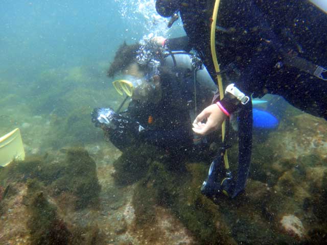 はじめての方にもおすすめの八丈島での体験ダイビング、初心者やブランクでも安心のガイドダイブ、丁寧でしっかりとしたPADI Cカード取得講習など、なによりもお越し下さるみなさまとの出会いを大切している東京から飛行機ですぐの八丈島のダイビングショップです!! [タイドプールで体験ダイビング]