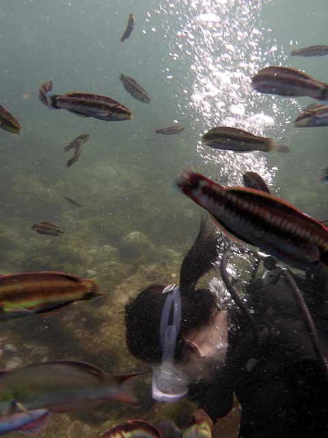 あとはちょっと頑張ってポイント移して八重根にも行きましたが、かなり緊張されていたようで、タイドプールでの練習ではそこそこ潜れてもいたのですが、、結局、沖には出られず仕舞い。とりあえず、いっぱいの魚を間近で見ても頂けましたが、またの機会がありましたら沖の方にも行けたらと思います。