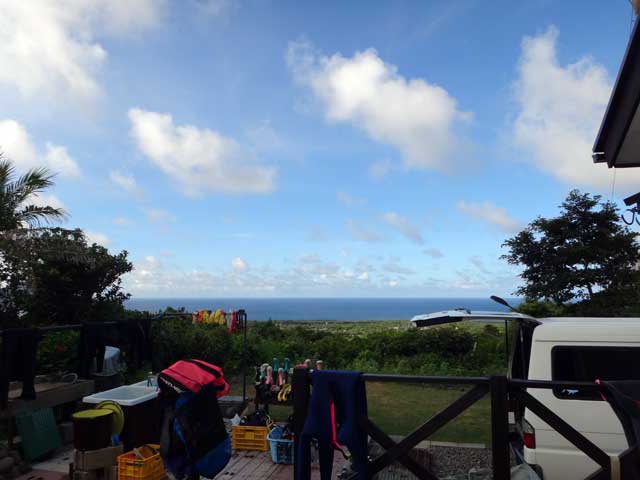 夜中に雨もパラついてはいたものの今日も夏の日差しが暑くなっており、北東側は凪いでいたので本日は底土で体験ダイビングとシュノーケリングです。