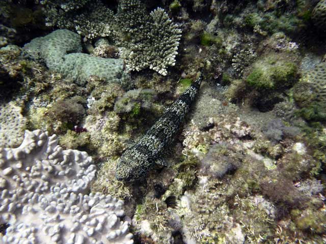 とっても穏やかな底土で足のつくところからゆっくり泳いでいきまして、たくさんのムロアジを見ながら水に慣れつつ、ソラスズメダイやヤマブキベラなんかの綺麗な魚も見たりもして、