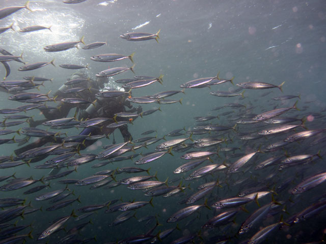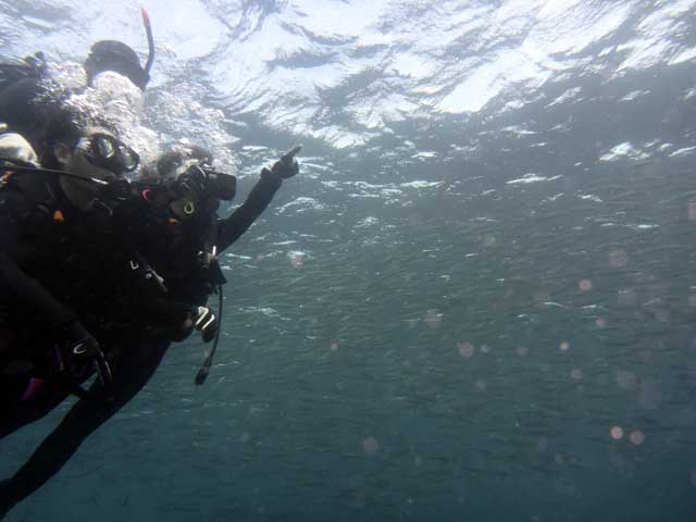 ムロアジに囲まれたときも非現実的な世界に酔いしれました。