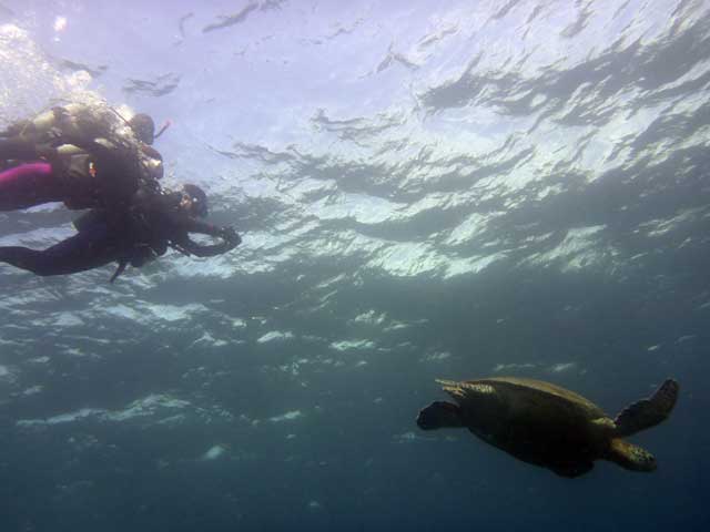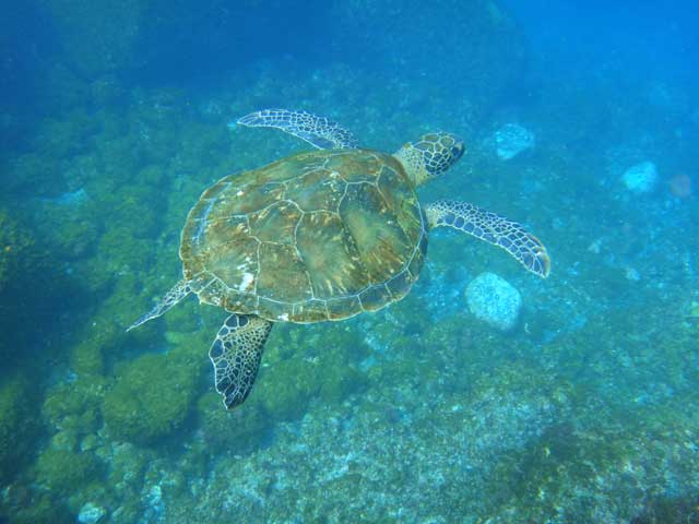 ゆっくりやれば不安もなくなり、結構みなさんできるようになりますので、沖まで出られてよかったです。ムロアジの群れも良い具合でしたし、アオウミガメにもたくさん出会えましたし。楽しんで頂けたようなら幸いです。また八丈島にいらした際には海の中をご紹介させて頂けたらと思います。ありがとうございました。