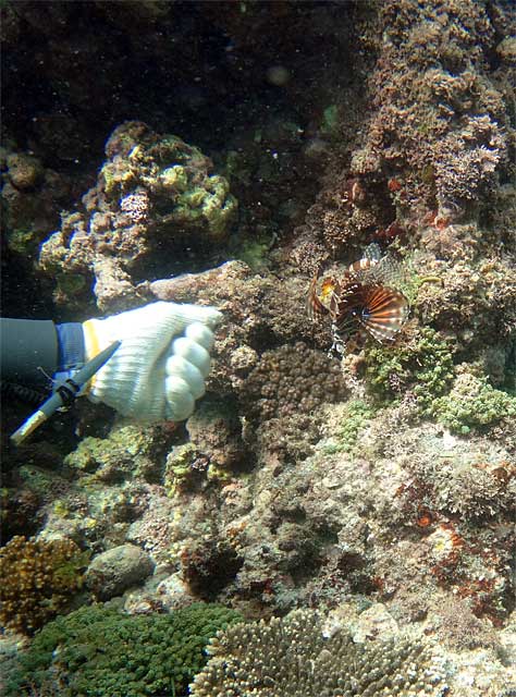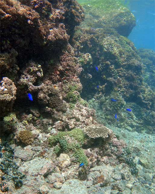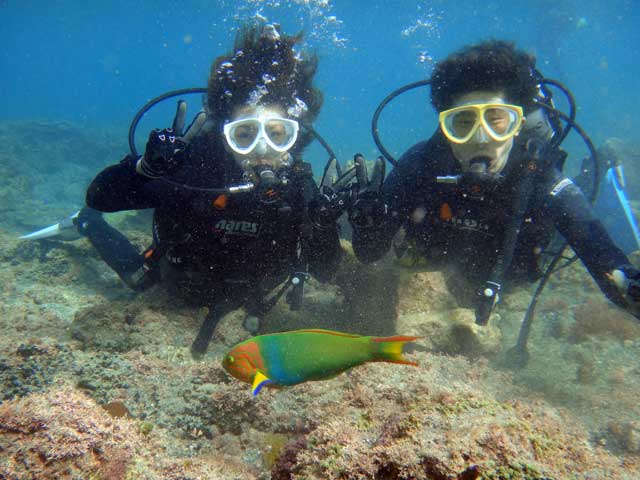 ショップで説明したあと、底土の浅場で練習をして、なんだか昨日よりも少しうねりも収まってきている感じもありまして、潜ってしまえば魚も近くで見られて楽しい海の中となっておりました。