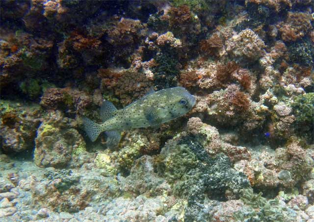 浅くあってもサンゴも綺麗で、ヤマブキベラやニシキベラ、キリンミノにネズミフグ、ソラスズメダイやチョウチョウウオなどのいろんな魚達を間近で見て頂き、日差しも差し込み明るい夏の海を楽しんで頂けました。