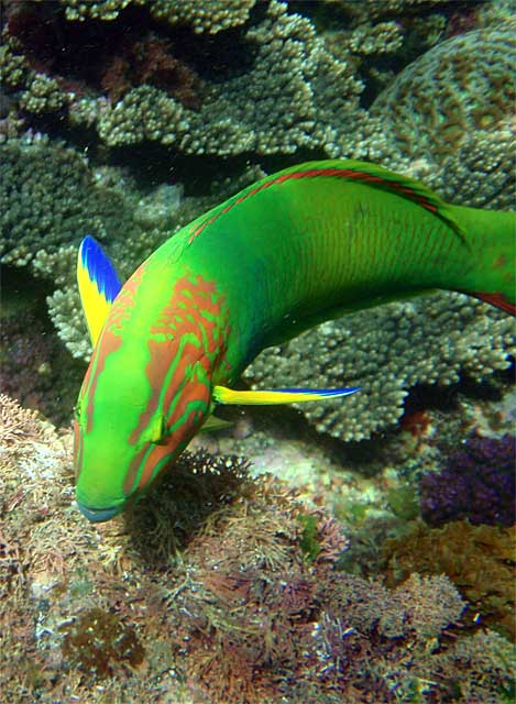 スノーケリングでは綺麗なサンゴと、サンゴに集まるたくさんの魚達も見たりもして、足元にベラの仲間がたくさんきたり、ヤマブキベラの大きなやつはとって も近くで見られ、ミカドウミウシの泳いでいるのを見たりもして、こちらも青空の下気持ちの良い夏の海を楽しんで頂けた様子。