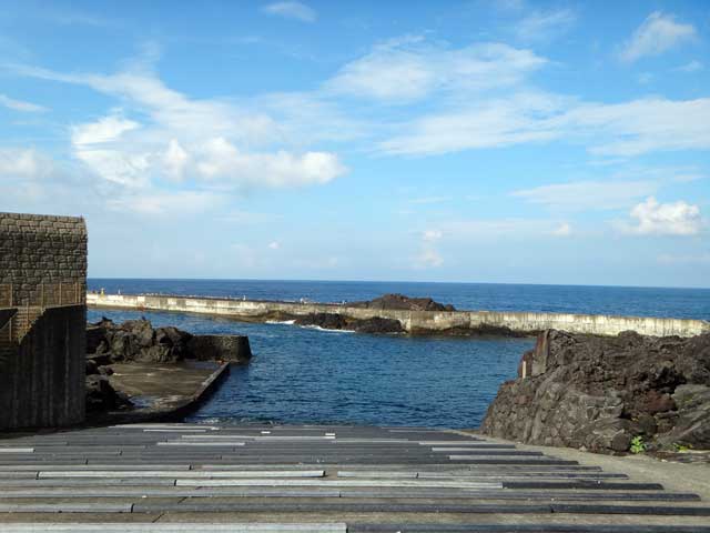 黒い雲もあったりもして一時雨も降っていた今日の八丈島。海の方は、全体的にうねりはあるが南西側は凪いでおりました。