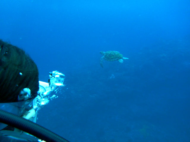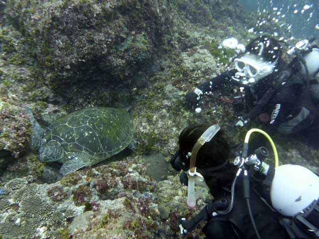 あとはアオウミガメも今日はたくさん見られ、とっても近くに寄ってみたりもして、天気はちょっとグズついてはおりましたが、綺麗な八丈島の海を楽しんで頂けました。