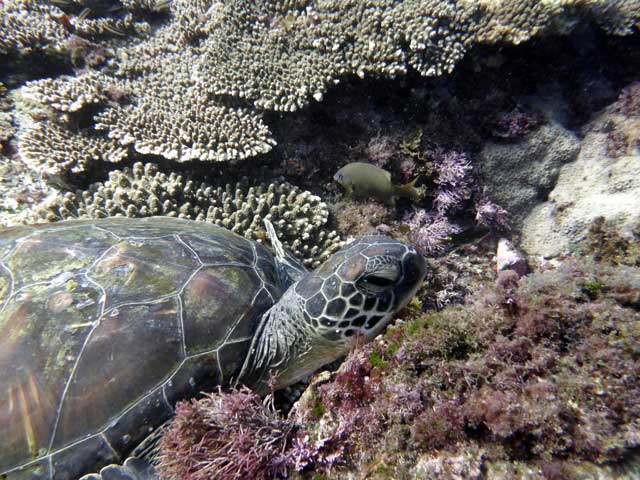 午後からは海にも慣れてきていたのでグルッと八重根を周ってきて、寝ているカメや泳ぐカメなんかもゆっくり見て頂けました。