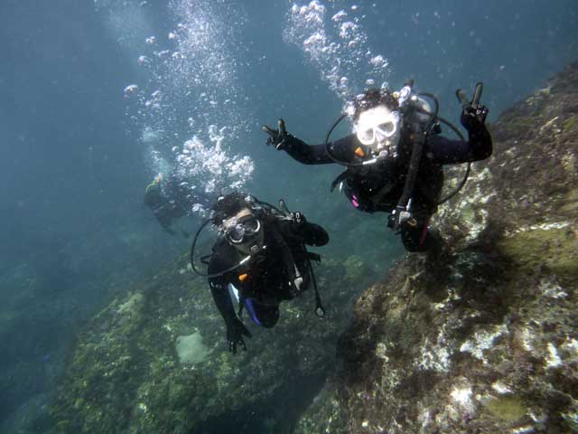 本日はほとんどの方が体験ダイビング経験者ということで、水にも慣れていらっしゃるようでしたので、浅場での練習はせず、足のつかない八重根でゆっくり楽しむ時間を長くとらせて頂いて。