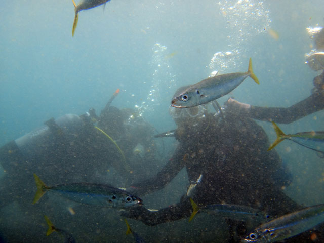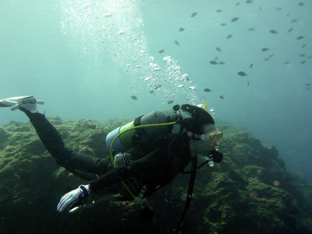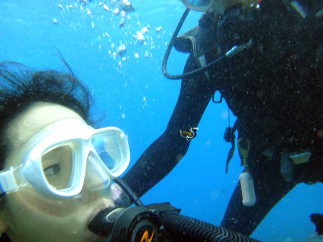 前にも体験ダイビングのご参加して頂いた方でお一人はCカードもお持ちでしたので、練習はサクッとすませ、午前中はムロアジを見ながらゆっくり久しぶりの八丈島の海に慣れて頂き、