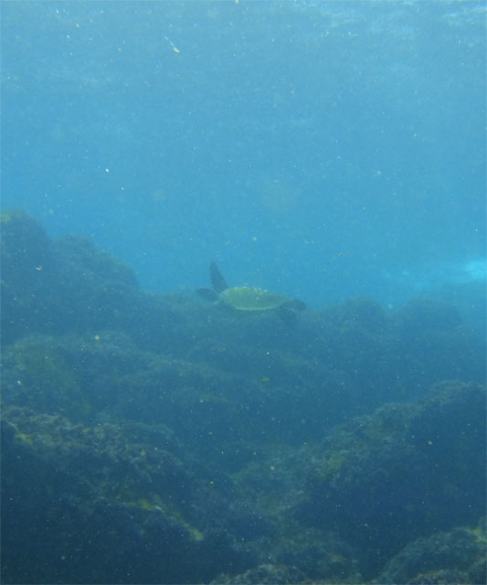 蒼く抜けてる夏の海をふわっと泳いでみたり、綺麗な魚達をいろいろ見て頂いたりもして、今日もなんとかアオウミガメもみんなでしっかり見られました。