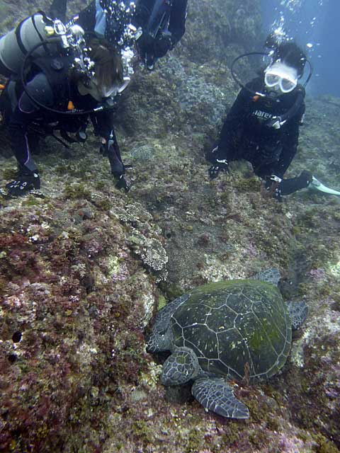 途中ナンヨウカイワリやツバメウオなんかも見つつ、今日も運よくカメの寝込みにこっそり近づけたりと、夏の八丈島の海を楽しんで頂けました。