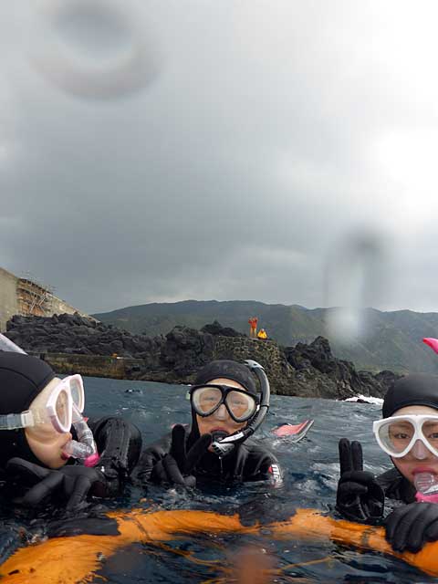 初めてのスノーケリングということで、最初は足のつくところもある穏やかな八重根のタイドプールで、ニシキベラなんかを見ながら練習をして、