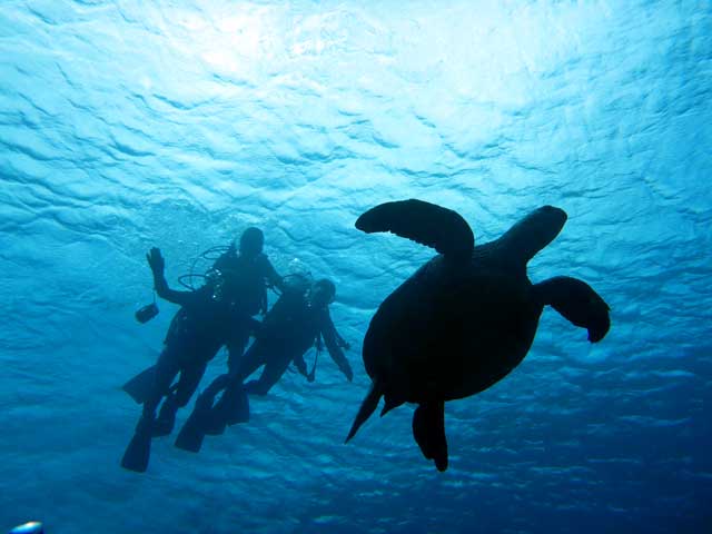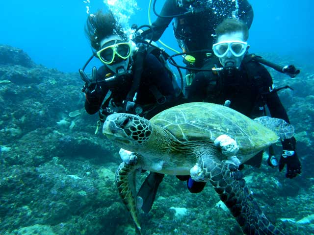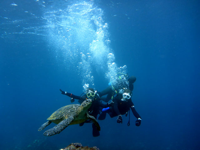 体験ダイビング経験者ということで、練習はサクッとすませ沖をゆっくり周ってきてみて、今日もアオウミガメを近くでゆっくり見て頂けました。