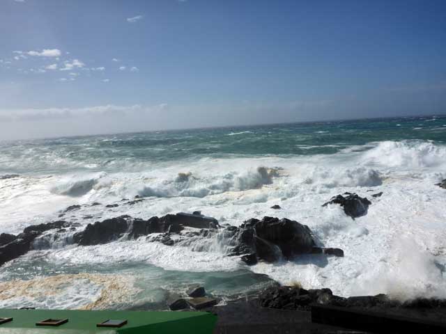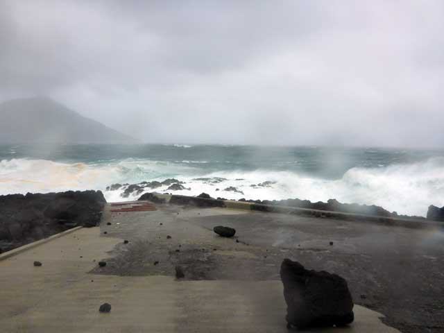 台風通過で荒れた天気から一気に青空が広がってきていた今日の八丈島。海の方は、南西側は真っ白で北東側大荒れでした。