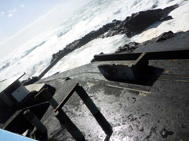 海ももちろん大荒れで、南西側の海岸線の道には波に押し寄せられて砂利や岩がゴロゴロしていたり、堤防もいくつかボコッと波でもっていかれたりもしていて。直撃されると気が休まらん感じです。まぁ、うちは特に大きな被害もなく、ありがたいことに無事にのりきれましたけど・・・
