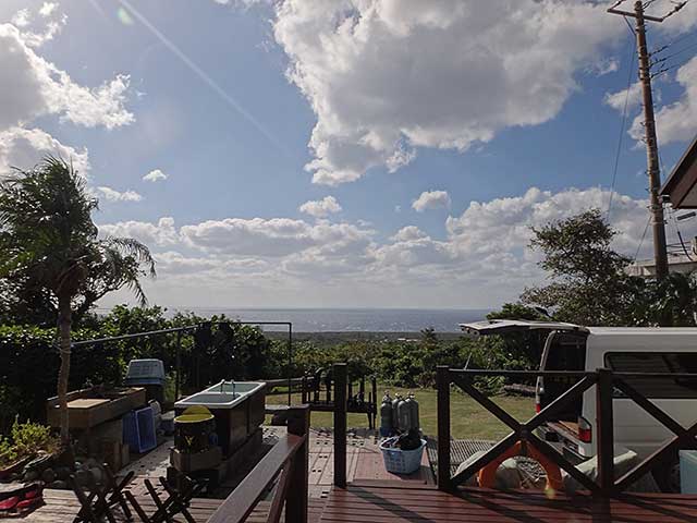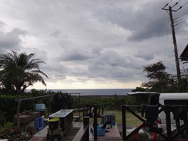 ちょっと暗めの空模様ですが、風は弱まり南西側の海も落ち着いてきていたので、本日はナズマドでダイビングです。