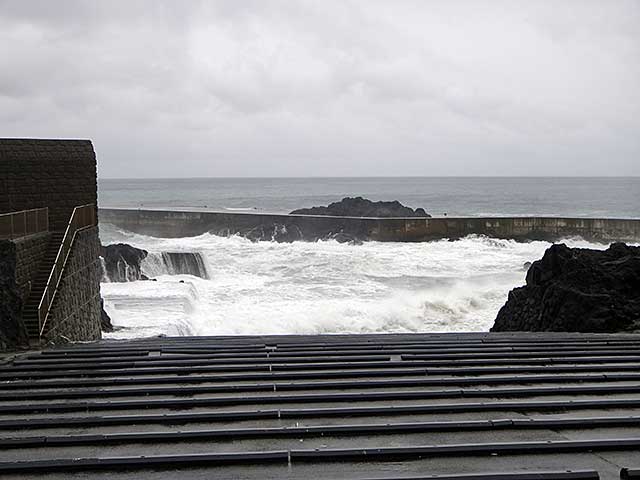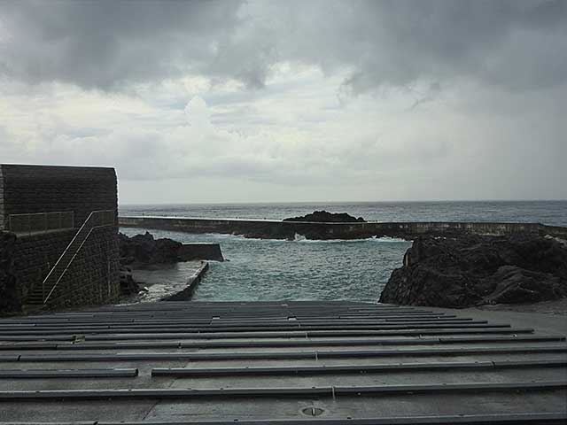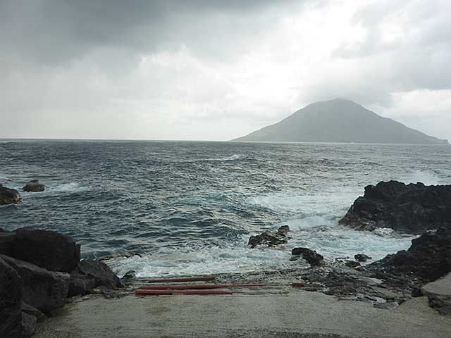 日中雨風強まって嵐っぽい陽気となっていた今日の八丈島。海の方は、南西側はうねりが入り北東側はバシャバシャしておりました。