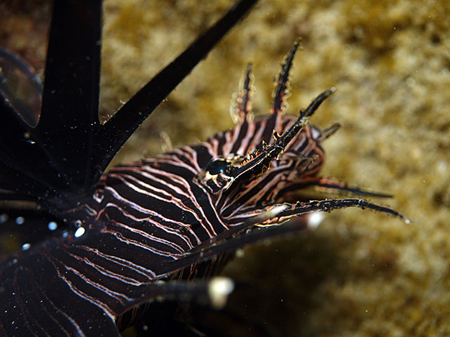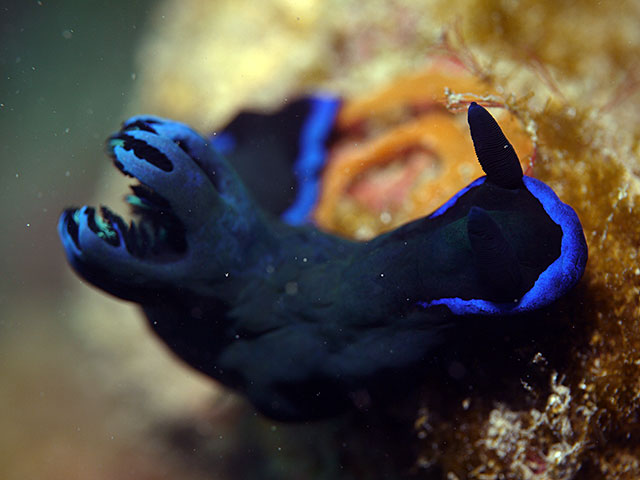 日中にまとまった雨も降っていたので、ちょっと濁りもありましたが、カゴガキダイやツノダシの集まりや、ニザダイやニセカンランハギなんかもいたり、ミドリリュウグウウミウシは一所懸命に卵を産んでいたりして、