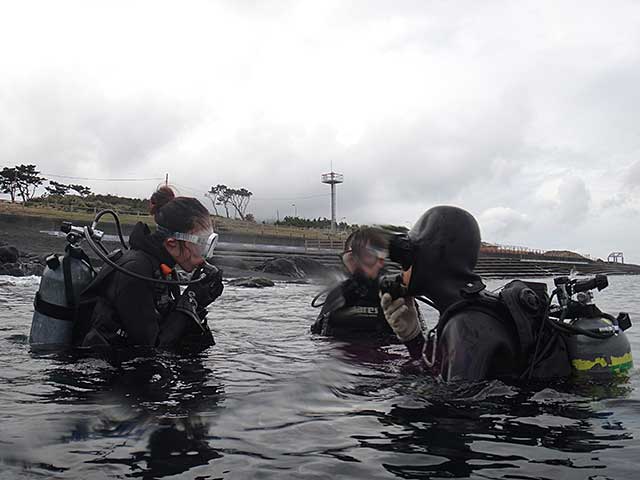 早めのうちはお日様も見られますが風も強まってきていて、南西側はバシャバシャしてきていたので本日は底土で体験ダイビングです。