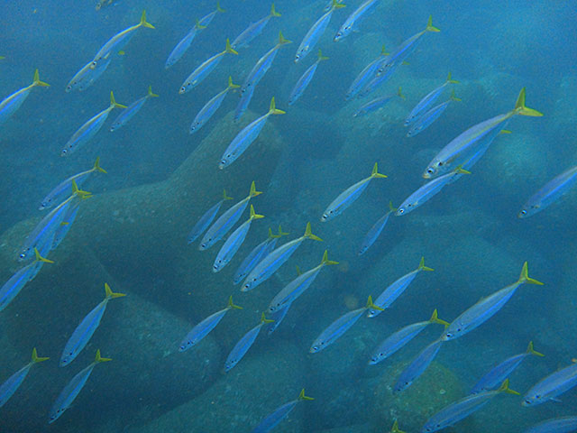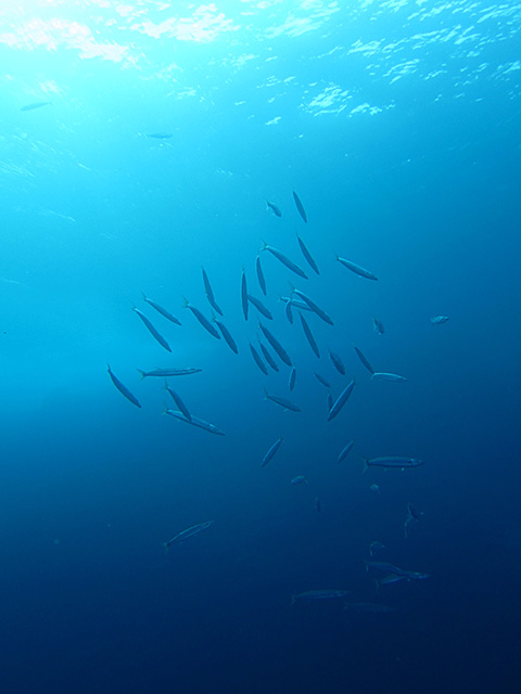 午前中のナズマドは、北からの潮が緩くかかっていて、お昼前には南に変わってきておりまして、うねりも少しありましたが、入れば水も綺麗で、タカベの集まりや、キンギョハナダイの群れ、アオウミガメもたくさんで、