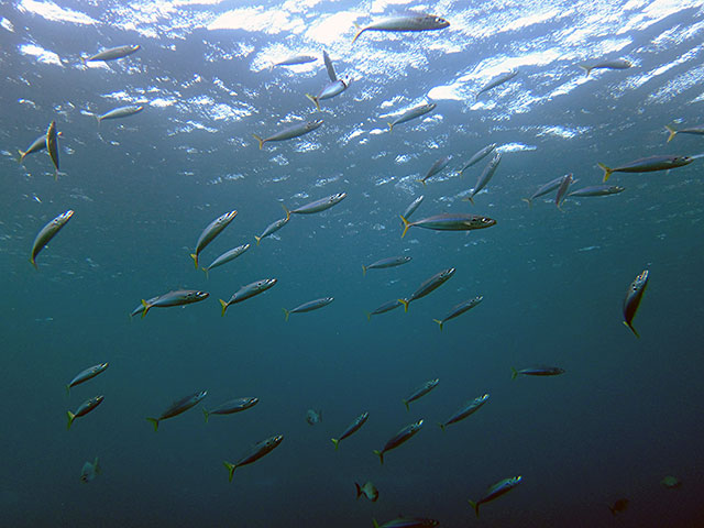 午前中の方が水が綺麗に抜けていたそうですが、ヒレナガカンパチが周ってきたり、ツバメオウもたくさんいたり、ウメイロモドキの子どももキンギョハナダイに交じって泳いでいたり