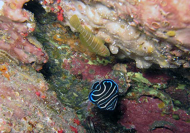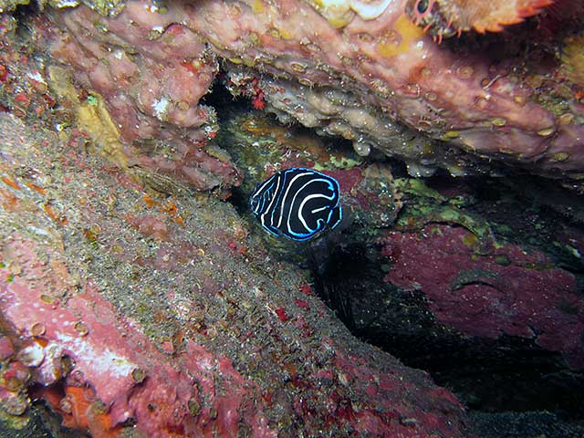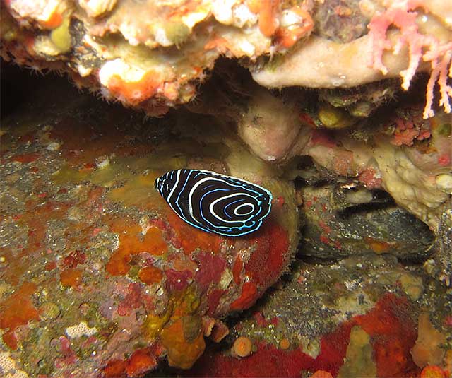 穴を覗けばベンケイハゼにサザナミヤッコの小さいの、コクテンベンケイハゼにニラミギンポなんかもおりまして、