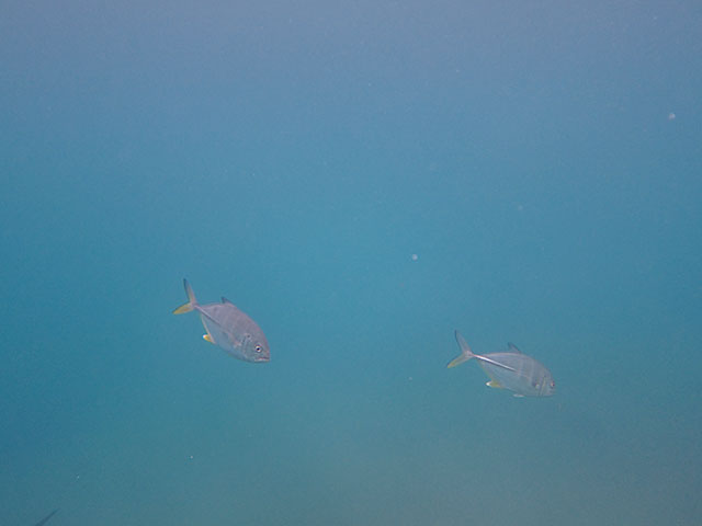 濁りはありましたが、キビナゴも入っていて、ギンガメアジやカンパチの小さいやつらも周ってきたり、クサフグの子ども達なんかの魚もいろいろ見て頂き、穏やかな海の中をゆっくり周ってこれらました。