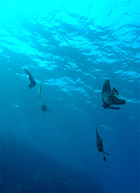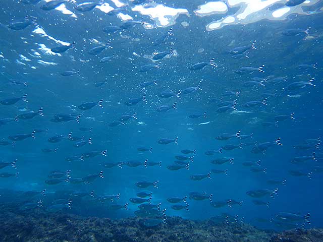 浅場もちょっと揺らされたりもしておりましたが、入れば水も綺麗でキビナゴがたくさん溜まっていたり、ツバメウオも若いやつらがチョロッと集まっていたり、