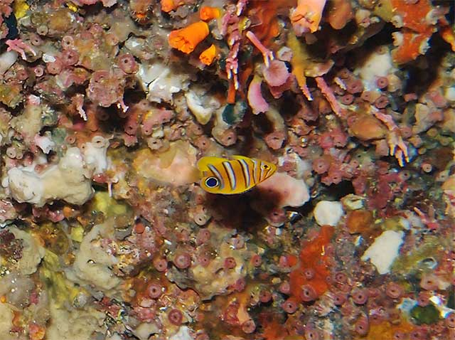 ミナミギンポ、サザナミヤッコやタテジマキンチャクダイの子どもなんかもおりまして、まだまだ暖かな海が続いております。