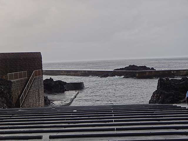 南からの風が強くなって次第に雨もパラついてきていた今日の八丈島。海の方は、南西側はバシャバシャで北東側は落ち着いておりました。