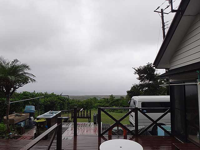 時折青空も見られるが雨もパラつく落ち着かない陽気となっていた今日の八丈島。海の方は、南西側は微妙にうねりはきている感じもありますがまだ落ちついておりました。