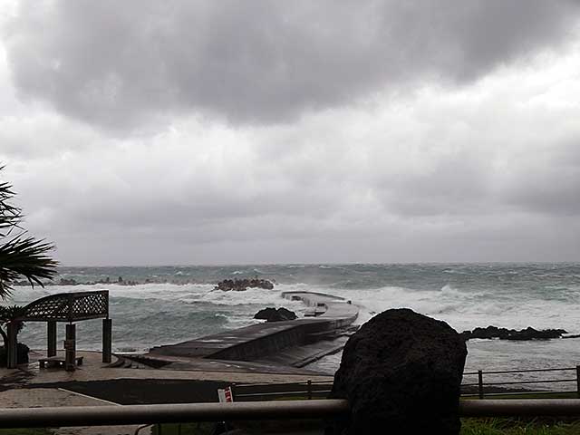 昼過ぎには雨もあがって明るい曇りの陽気となっていた今日の八丈島。海の方は、南から台風のうねりっぽいのが入ってきておりました。