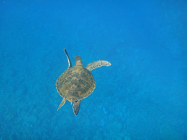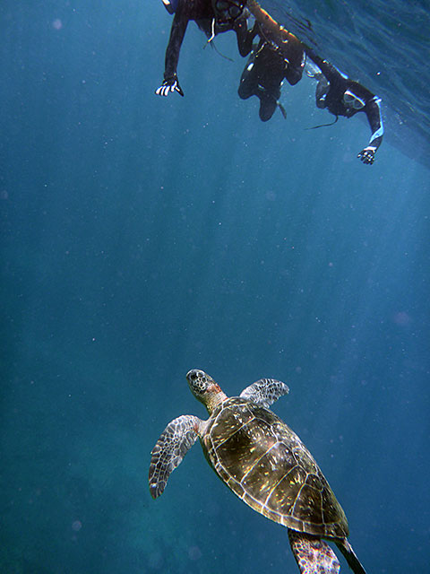 沖まで出れば、寝ているカメや泳いでいるカメも見られたり、お日様も差し込む蒼い海を楽しんで頂いて、