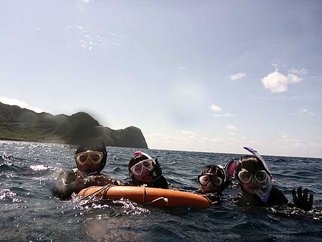 スノーケリングは八重根に行って、キビナゴがたくさんの青い海の中、気持ちの良い日差しの下で、たくさんの魚やアオウミガメも見られたり、海も陸も夏っぽい感じで楽しんで頂けた様子。