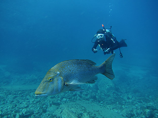 数は少なくなってはいますが、入ればムロアジいたりして、大きなハマフエフキに、アカカマスの群れ、キビナゴもたくさんで、小さいカメの寝てるの見たり、ニザダイたくさん群れてるのを見たりと、楽しみながら講習をして頂き、