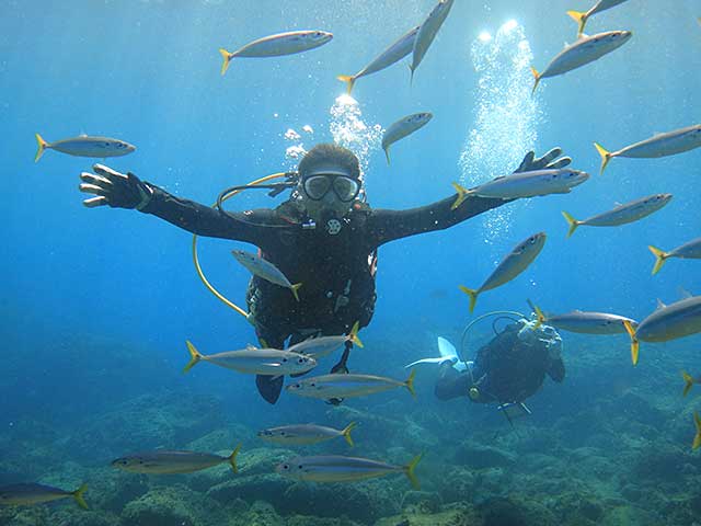 はじめての方にもおすすめの八丈島での体験ダイビング、初心者やブランクでも安心のガイドダイブ、丁寧でしっかりとしたPADI Cカード取得講習など、なによりもお越し下さるみなさまとの出会いを大切している東京から飛行機ですぐの八丈島のダイビングショップです!! []